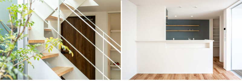 2階部分はLDKからお部屋を見渡せるので、家族の姿が見えて寂しくありません。家族の繋がりをより強く感じられる家です。