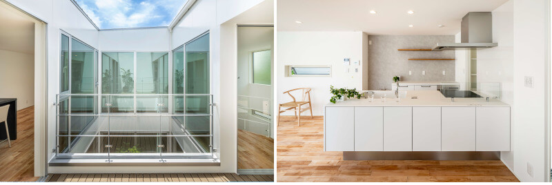 そして、中庭を中心にガラスで部屋を区切り、家中に光を分散。