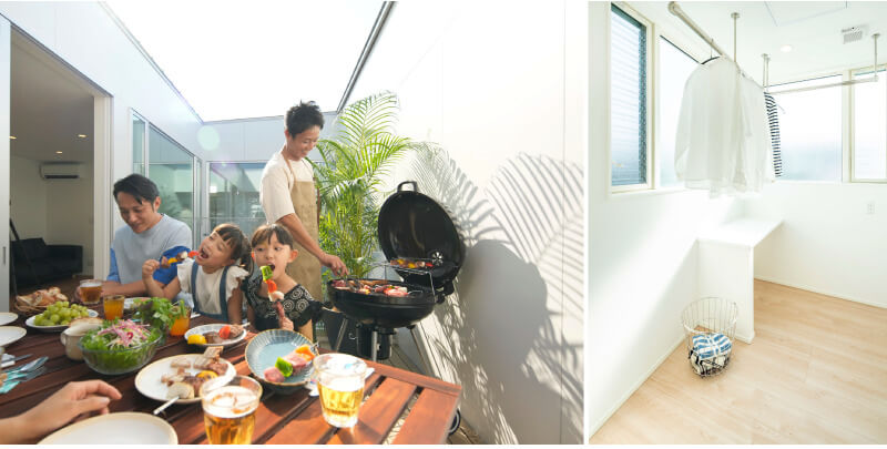 中庭やバルコニーでBBQや日光浴、アウトドアなどを人目を気にせず存分に楽しむこともできます。